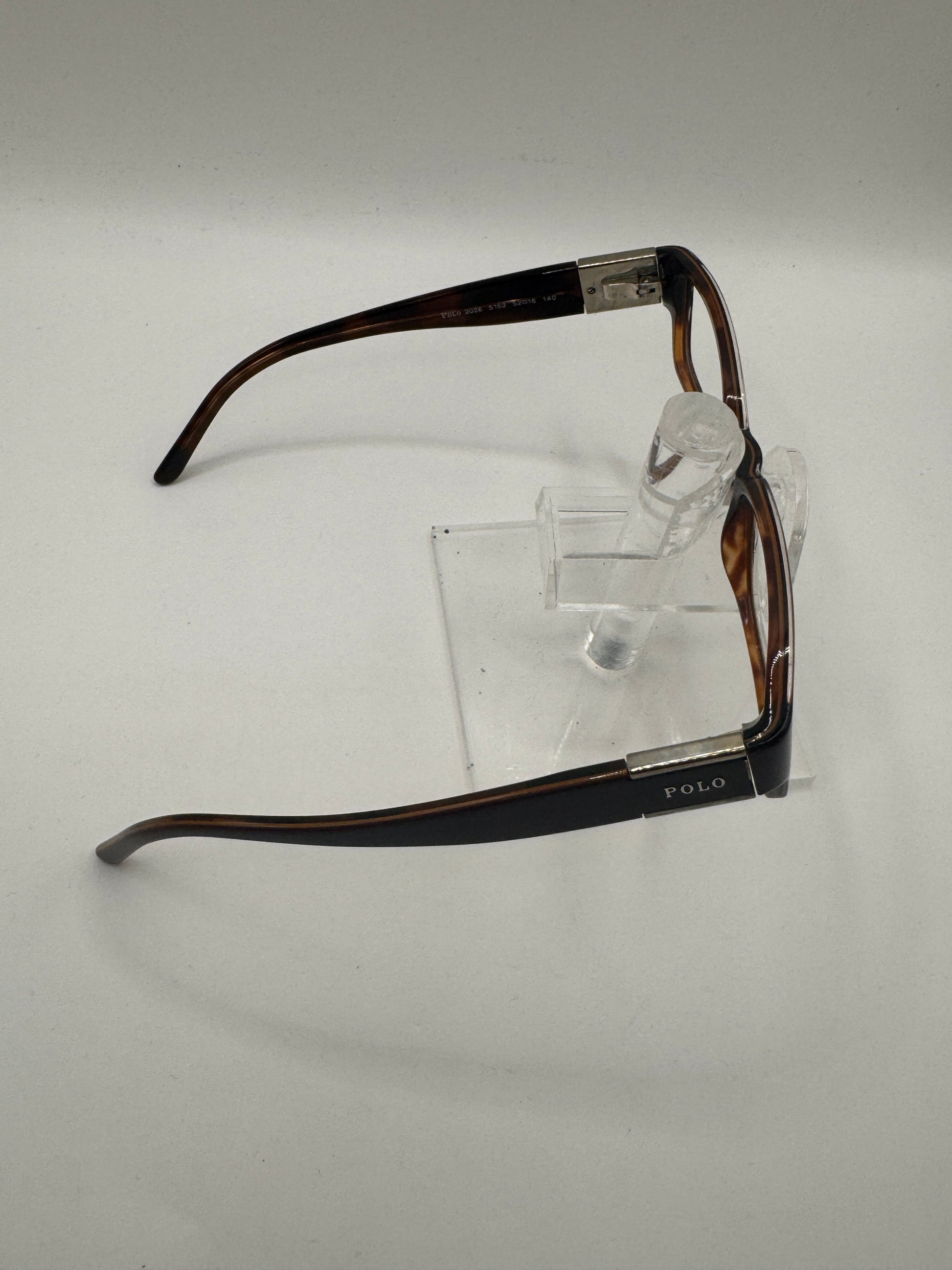 Buy Polo 2026 Eyeglasses color code 5152 lens-temple color clear-brown havana in size 52-16-140. Left temple is loose. These glasses are Pre-Owned.