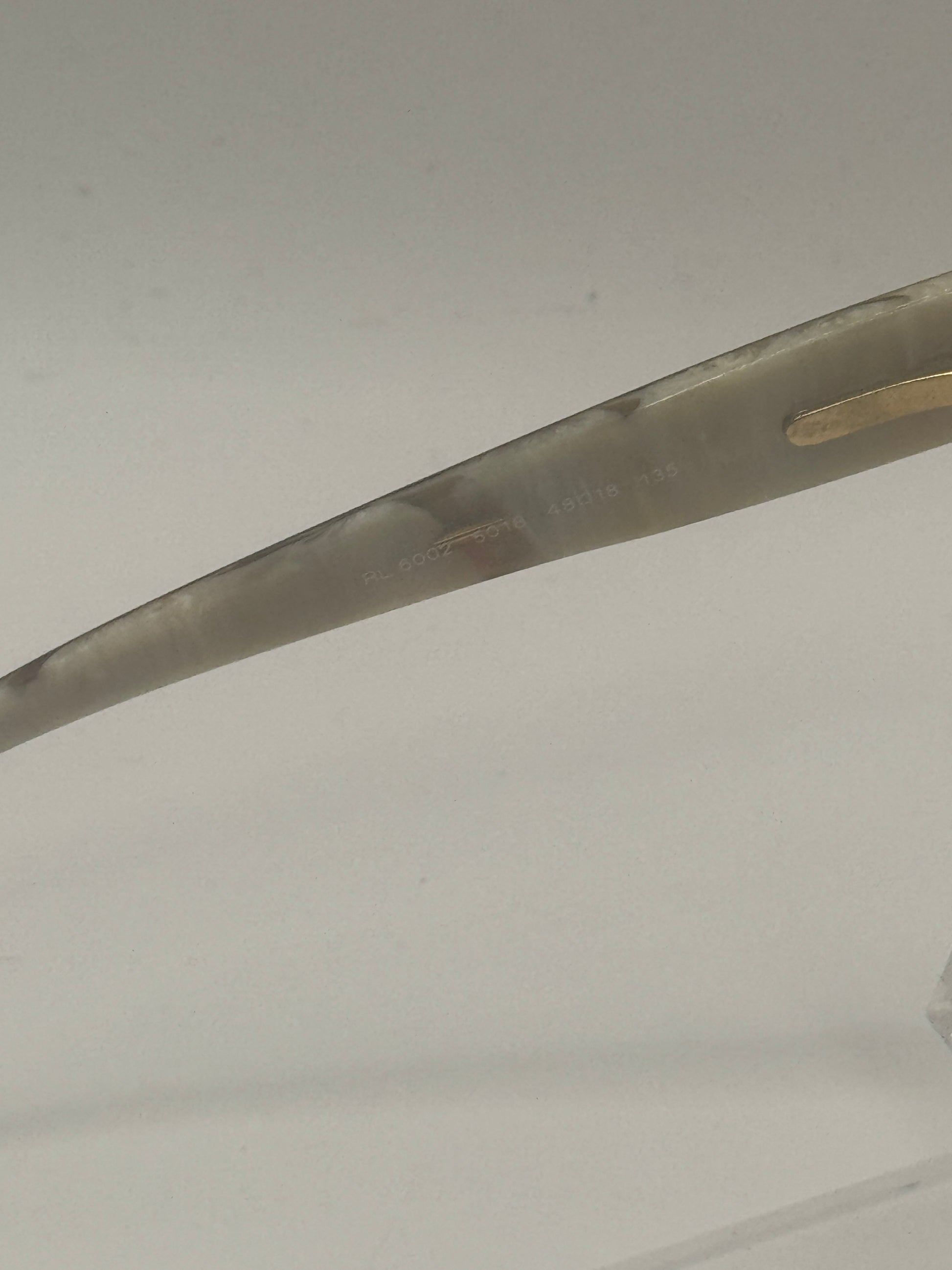 Buy Ralph Lauren 6002 Eyeglasses color code 5018 lens-temple color havana horn-clear in size 48-18-135. Damaged logos. These glasses are Pre-Owned.