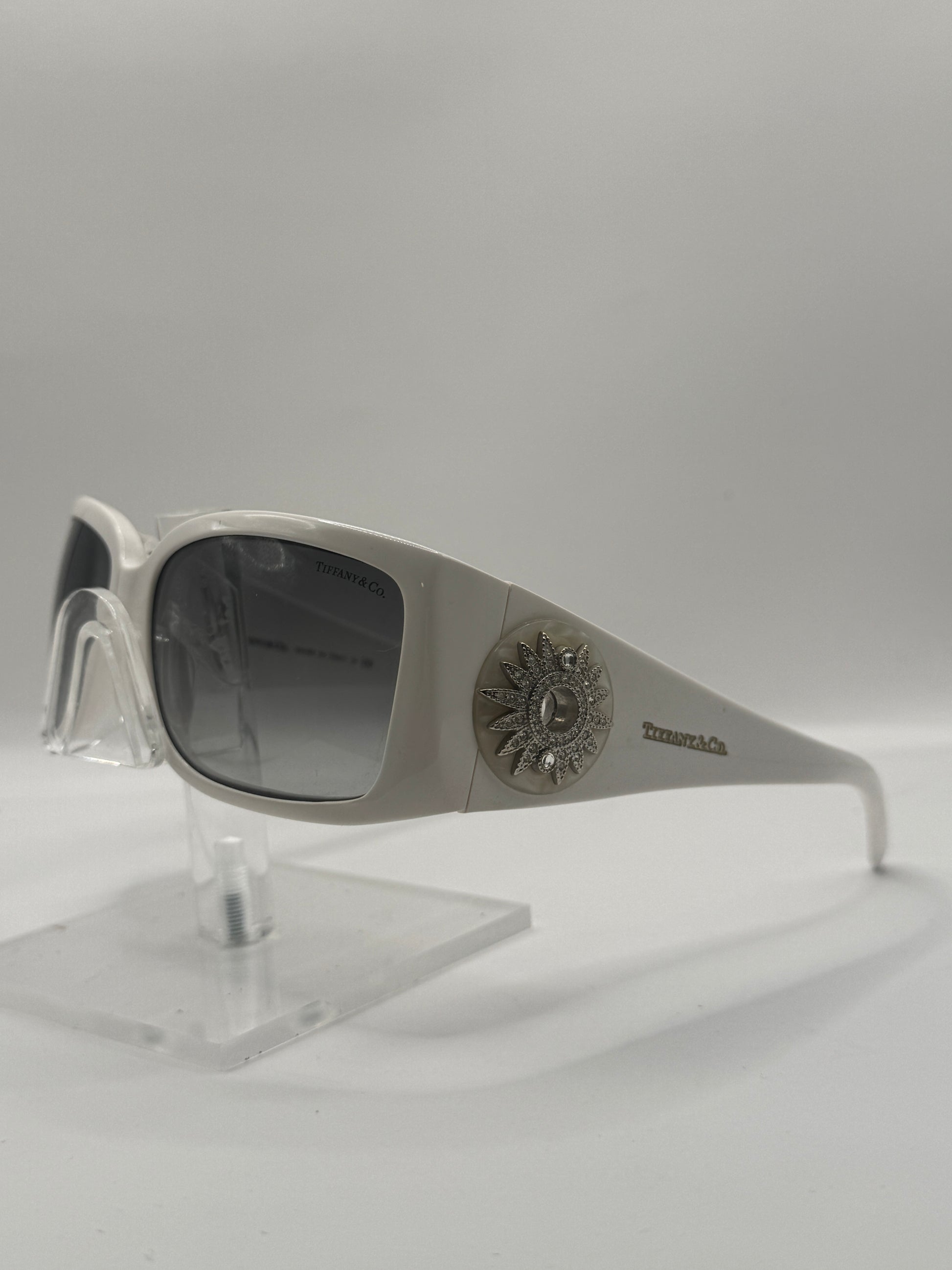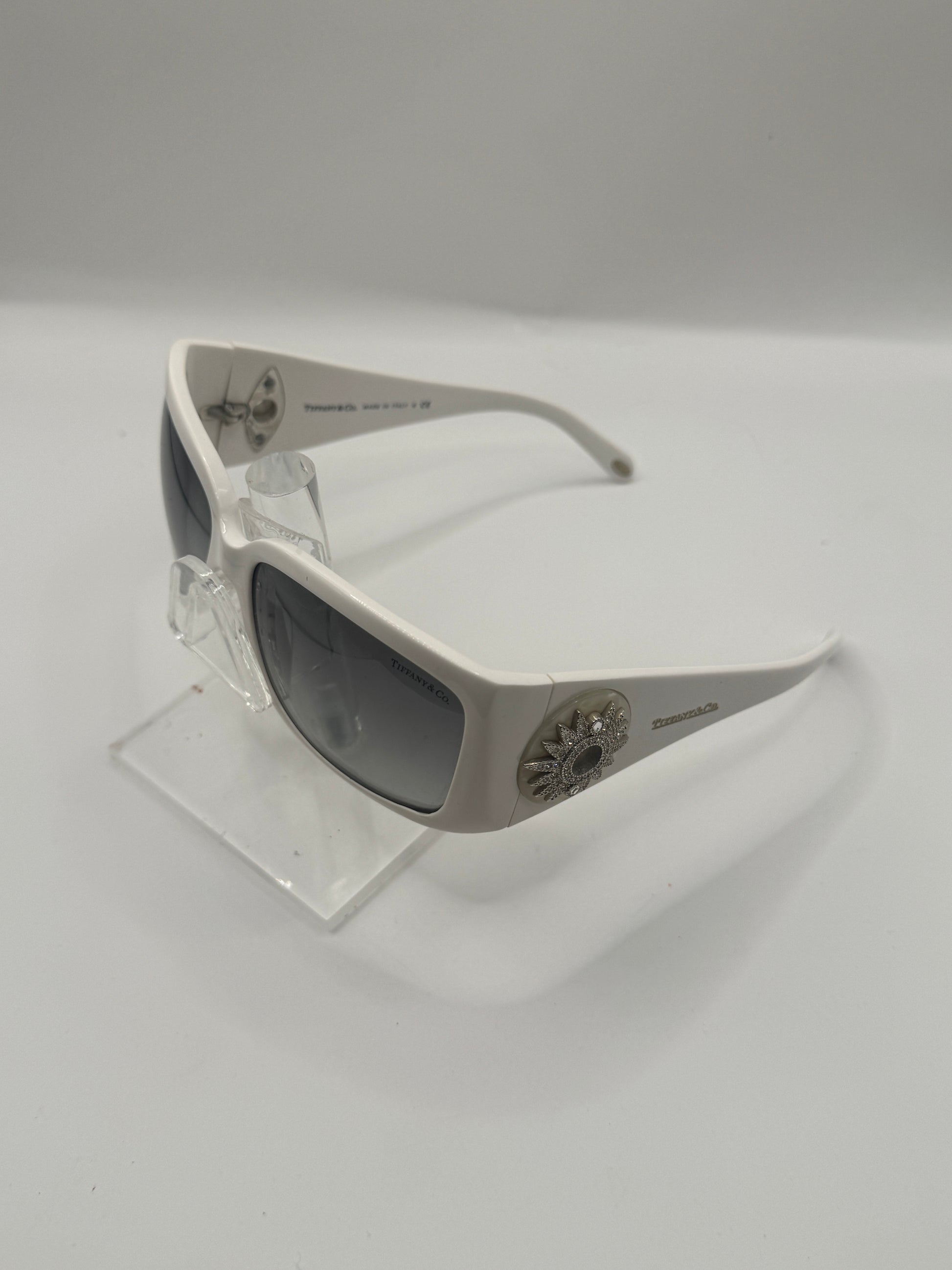 Buy Tiffany 4017B Sunglasses color code 80273C lens-temple color as shown-white gray gradient in size 58-16-0. Scratches are visible on both lens. These glasses are Pre-Owned.