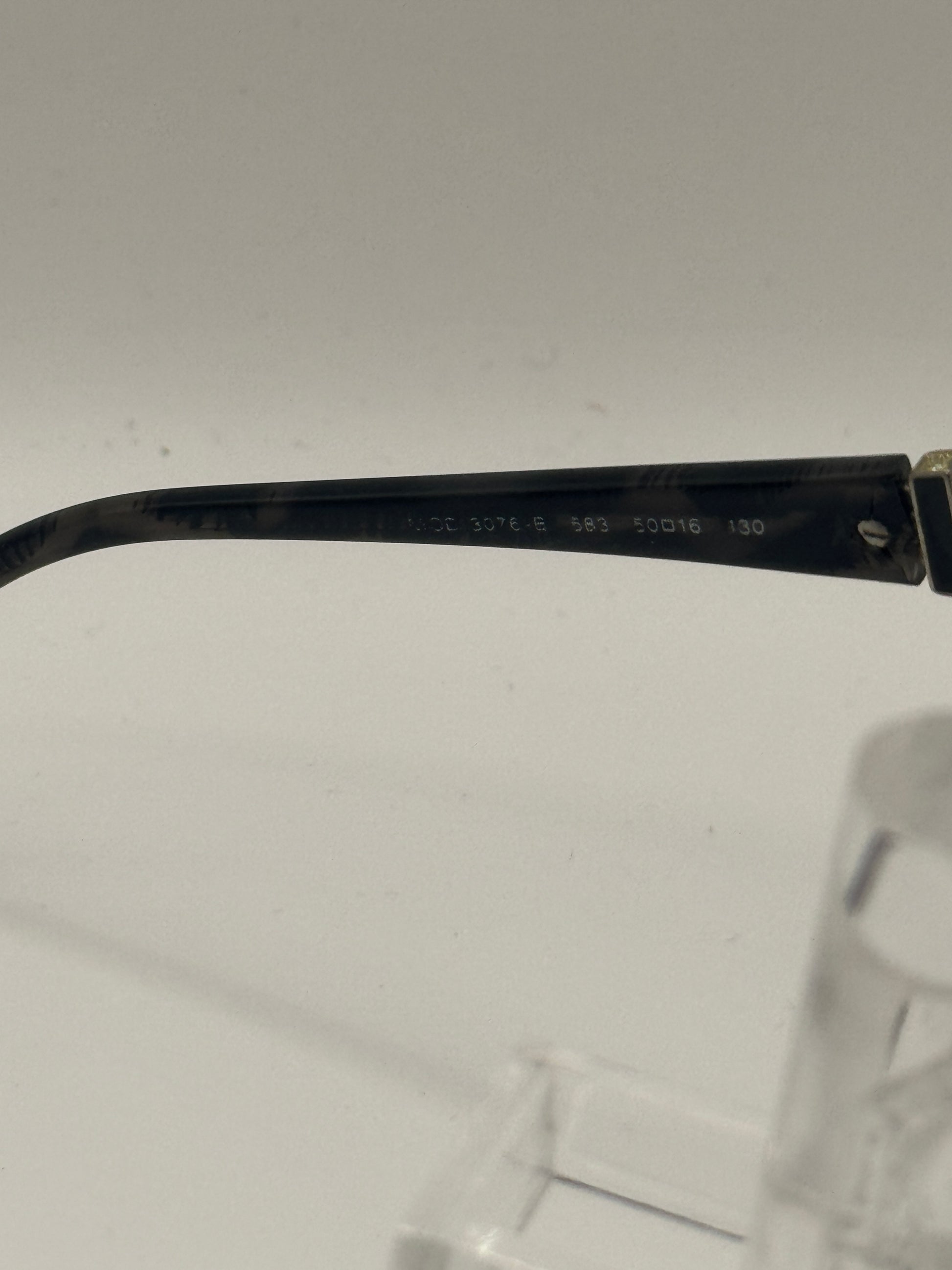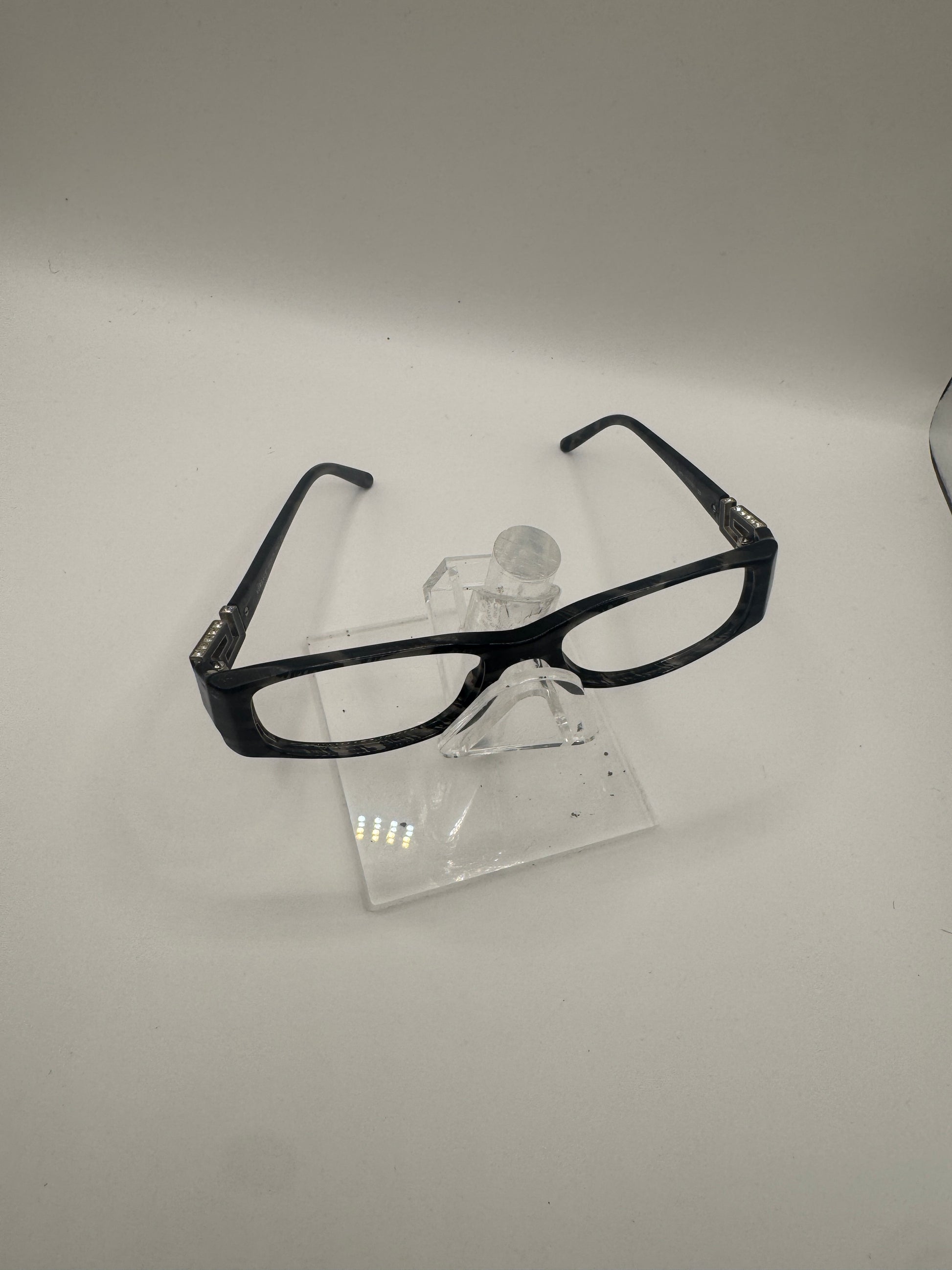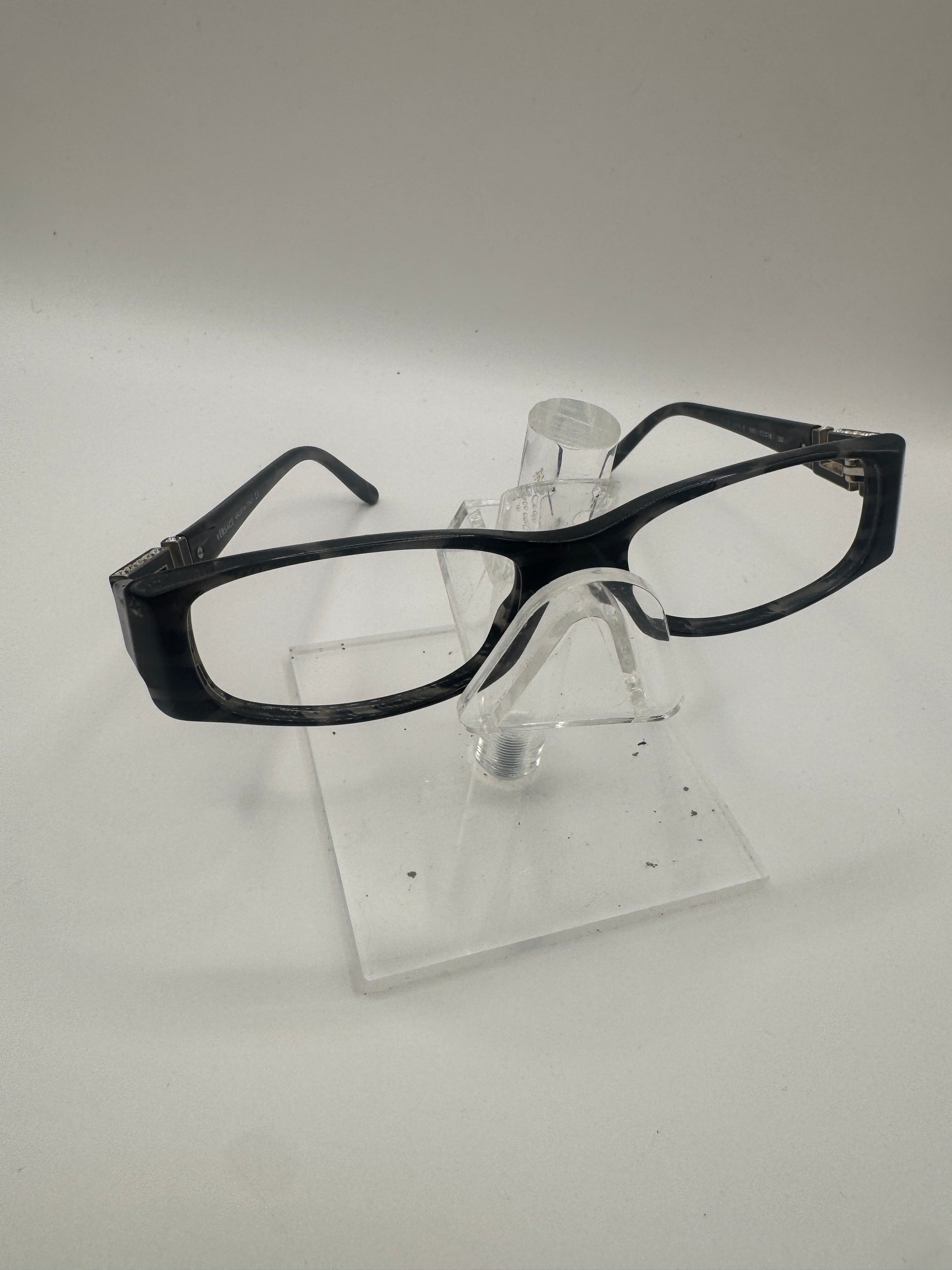 Buy Versace 3076B Eyeglasses color code 583 lens-temple color clear-black marble in size 50-0-0. Temples are loose. These glasses are Pre-Owned.