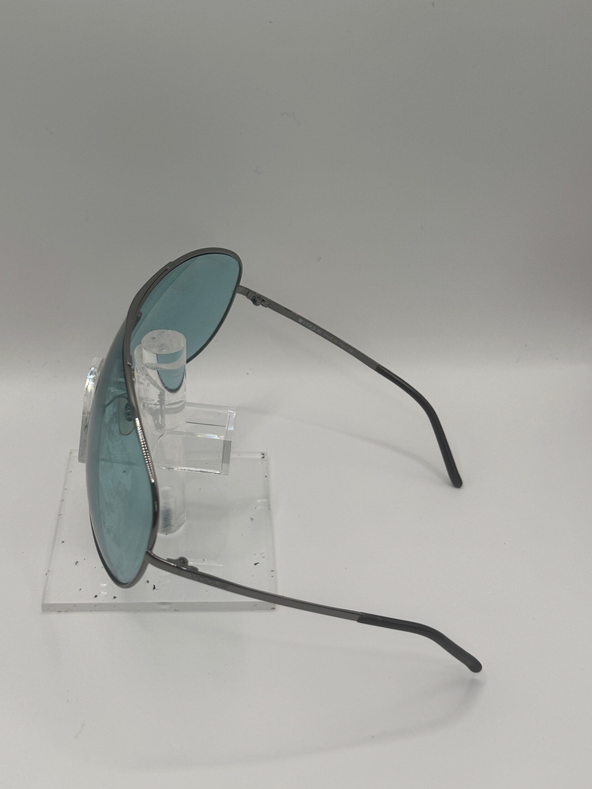 Buy Vogue 3554 Sunglasses color code 3528G lens-temple color gray green faded-black in size 136-1-115. Lenses are fully scratched and lenses are peeling. These glasses are Pre-Owned.