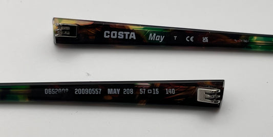This is a Both Temples for the COSTA DEL MAR model May 208 in color multicolored tortoise. This item is Used.